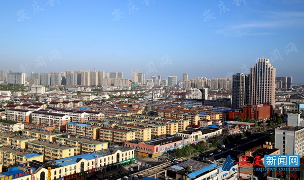 江苏省海安市城区鸟瞰。(8月14日摄) 记者 江胜 摄